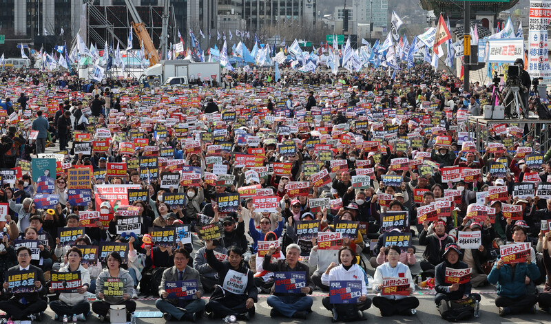 윤 대통령 탄핵소추안이 통과된 지난해 12월14일 여의도 국회 앞 집회 이후 가장 많은 시민이 몰렸다. 경복궁역을 나오기까지 긴 줄을 늘어서야 했고 도보 이동 또한 쉽지 않았지만, ‘대통령 파면과 함께 봄을 맞겠다’는 의지는 저마다, 각자의 이유로 결연했다. 다수 전망처럼 내주 헌법재판소의 탄핵 선고가 이뤄진다면 “대통령 파면”을 외치는 마지막 주말 집회가 될 터였다.