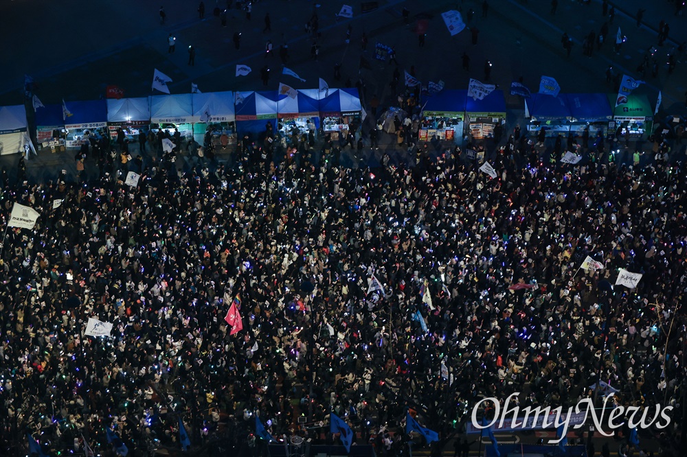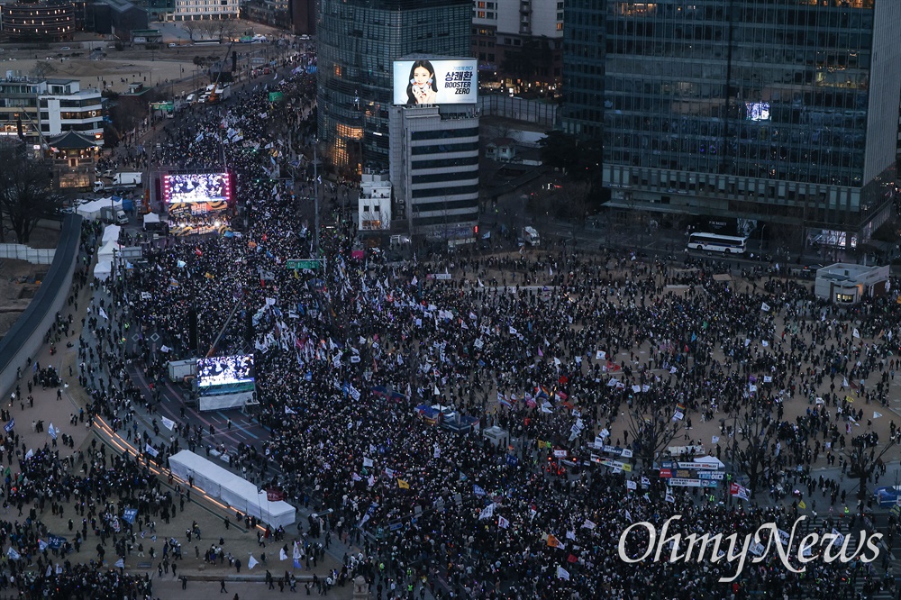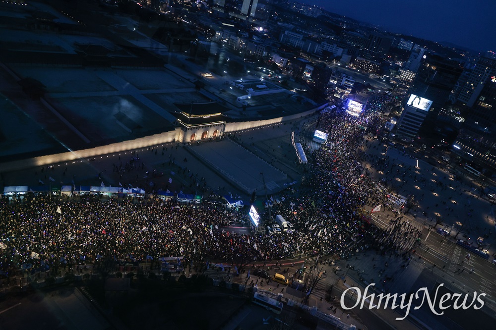 해 저무는 경복궁 앞에 모인 시민들이 소녀시대의 '다시 만난 세계'를 부르고 형형색색의 응원봉을 흔들자 전야제 같은 분위기가 되기도 했지만, 시민들은 최근 윤 대통령을 석방한 검찰과 법원에 강한 불만을 쏟아내고 있었다.