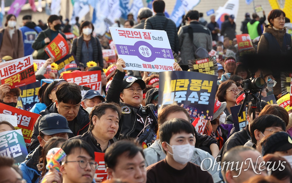▲ 수많은 시민들이 15일 오후 서울 종로구 광화문 동십자각 앞에서 열린 ‘야 5당 공동 비상시국 대응을 위한 범국민대회’에 참석해 윤석열 대통령의 파면을 촉구하고 있다. ⓒ 유성호