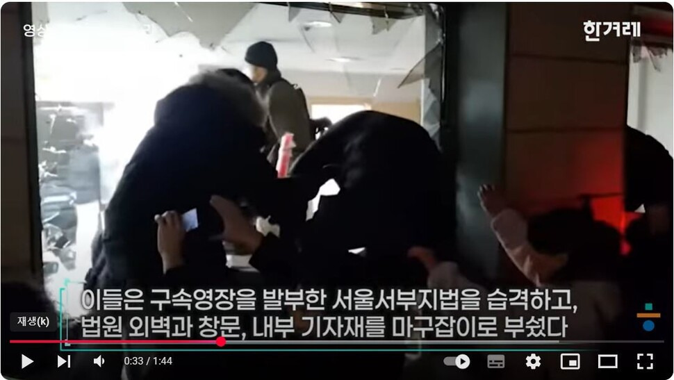 앞서 1월19일 새벽 3시께, 윤석열 극렬 지지자 수백명이 윤석열 구속영장을 발부한 판사를 잡겠다며 서울서부지방법원에 난입했다.