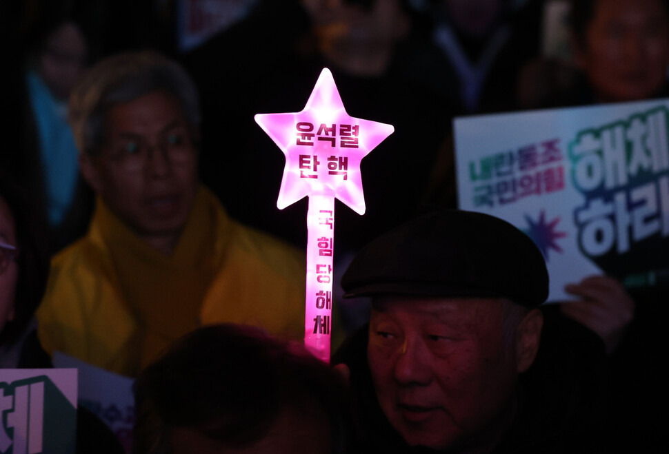 서울에서 임상심리사로 일하는 국민의힘의 40대 여성 당원 이아무개씨는 지난 7일 윤석열 대통령 탄핵에 반대하는 이유를 묻자 “야당이 줄탄핵에 예산삭감으로 정부를 마비시키지 않았나?”라며 “진짜 내란범이 누구인지 묻고 싶다”고 했다. 7~10일 한겨레와 인터뷰한 다른 국민의힘 당원들도 마찬가지였다. 이들은 한목소리로 “거대 야당, 민주당의 횡포”를 지적하며, “윤 대통령을 지키는 것이 대한민국 자유민주주의를 지키는 것”이라고 했다.