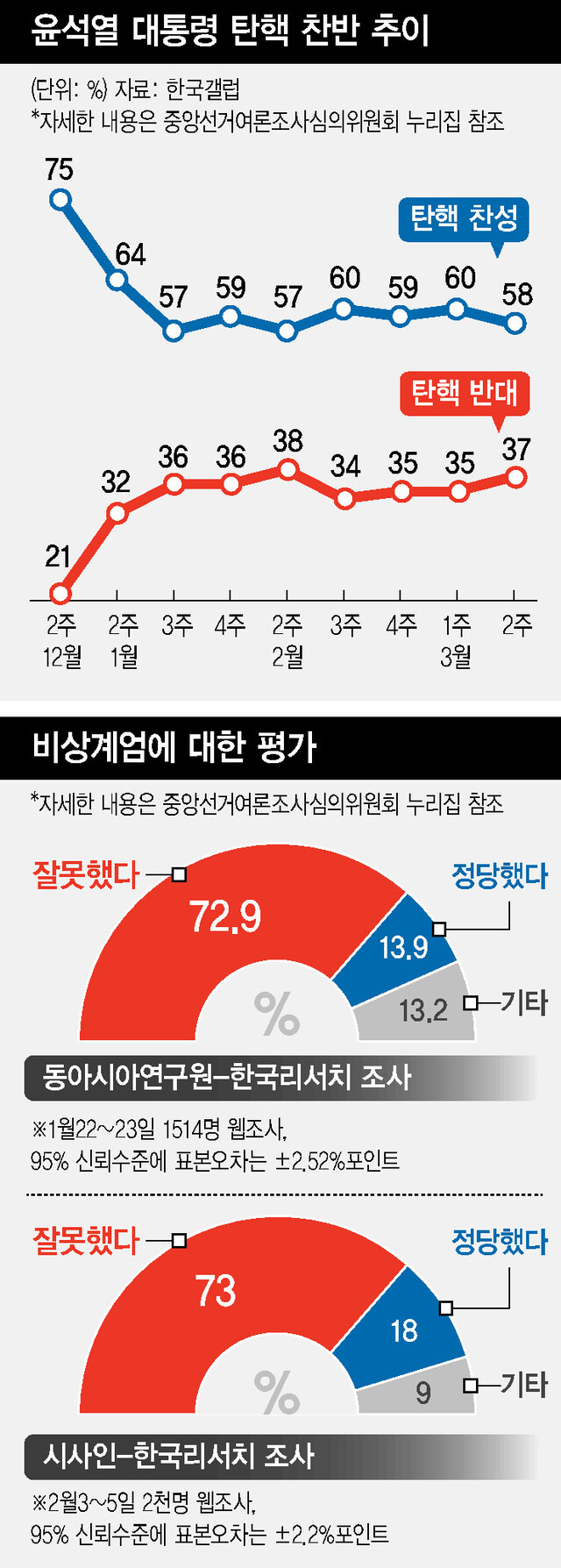 정치권 일부에선 ‘윤석열 대통령 탄핵’에 반대하는 이들을 모두 ‘극우’로 봐야 한다는 견해도 있다. 이들은 최근 여론조사에서 30%대를 꾸준히 유지하고 있다. 중요한 건 ‘탄핵 반대’ 응답층 안에 비상계엄 선포에 부정적이고, ‘서울서부지법 난동’ 같은 극단 행동에도 반대하는 이들이 다수 섞여 있다는 점이다. 대통령 탄핵에 대한 평가에는 ‘옳고 그름에 대한 판단’뿐 아니라, ‘처벌의 경중’과 ‘파급 효과’에 대한 ‘정무적 판단’도 함께 작용하기 때문이다.