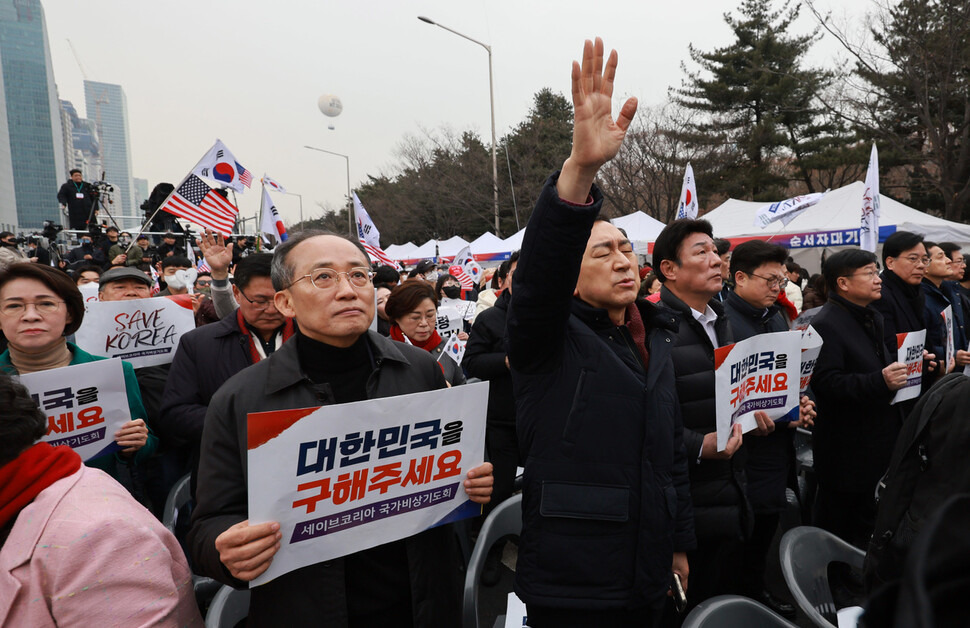 서천호 국민의힘 의원은 지난 1일 보수성향 기독교단체인 세이브코리아가 주최한 여의도 집회에서 “불법과 파행을 자행하는 고위공직자범죄수사처, 선거관리위원회, 헌법재판소, 모두 때려 부숴야 한다. 쳐부수자”고 말했다. 국민의힘 현역 의원들이 탄핵을 반대하는 보수 집회에 참석해 극우적 주장에 동조하는 발언을 한 적은 있지만, 선관위 같은 독립적 헌법기관과 헌재라는 최고 사법기관에 겨냥해 “때려 부숴야 한다” “쳐부수자”고 선동한 건 처음이다. 이 자리에는 김기현·나경원·추경호 등 국민의힘 의원 37명과 원희룡 전 국토교통부 장관과 김성태 전 원내대표 등 원외 인사들이 참석했다.
