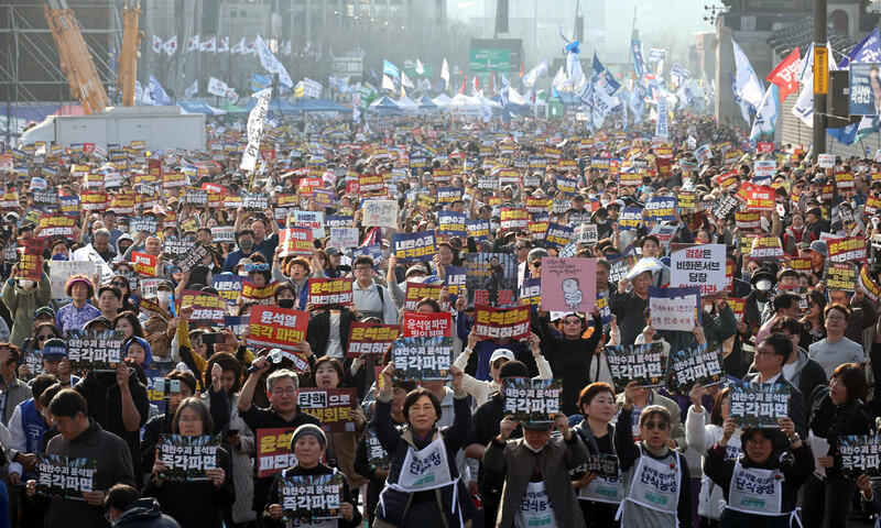 “윤석열을 당장 파면하라. 윤석열을 당장 파면하라…”