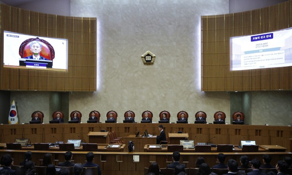 이날 대법원 전원합의체 판단은 조희대 대법원장과 오석준·서경환·권영준·엄상필·신숙희·노경필·박영재·이숙연·마용주 대법관 등 10명이 주도했다. 모두 윤석열 대통령 때 임명했다.(마용주는 한덕수 권한대행 임명) 검찰 고위직 출신 변호사는 “윤석열 구속취소 결정부터 이번 대법원 파기환송까지 내란 사태 이후 한국사회의 기득권 세력이 똘똘 뭉친 결과로 보인다. 윤석열 정부의 사법부 장악이 결정적 순간에 효과를 본 것”이라고 했다. 이재명 후보의 6·3 대선 출마를 막거나, 당선되더라도 임기 내내 정당성을 흔들겠다는 대법관들의 의지가 노골적으로 드러났다는 것이다.