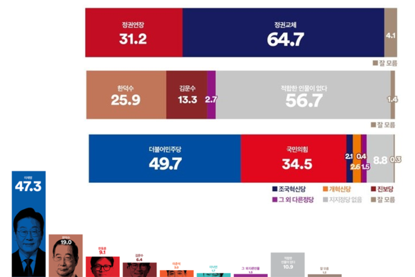 대선주자 적합도,‘이재명’(47.3%)과 ‘한덕수’(19.0%) 격차 28.3%p