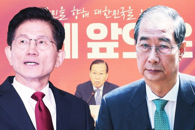 윤석열 전 대통령 파면으로 치러지는 6·3 대통령 선거는 애초부터 국민의힘에 절대적으로 불리한 선거였다. ‘김문수-한덕수 후보 단일화’가 이뤄져도 ‘이재명 독주 구도’를 근본적으로 흔들기엔 파괴력이 부족하다는 사실 역시 국민의힘 의원들 대부분 인정한다. 그런데도 왜 국민의힘 지도부는 김문수 후보를 주저앉히고 무소속 한덕수 후보에게 당의 후보 자리를 내주려는 것일까.