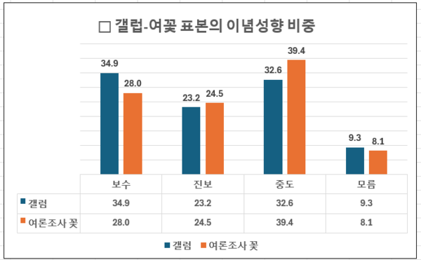 갤럽 조사는 보수성향 과표집으로 빚어진 이상 현상