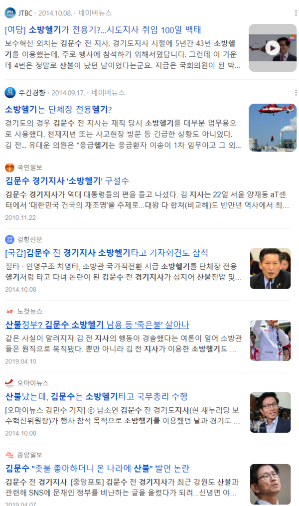 정작 김문수는 경기지사 때 소방헬기 43회 이용