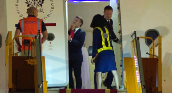실제로 마크롱은 비행기 계단을 내려오는 도중에 브리지트 여사의 손을 잡으려 했으나, 브리지트는 이를 거부하고는 대신 난간을 잡았다. 이에 대해 엘리제궁 쪽은 “대통령과 부인은 방문을 시작하기 전에 장난을 치며 마지막으로 긴장을 푸는 순간이었다”고 진화에 나섰다.