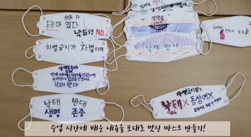 수업에서는 차별금지법과 임신중지를 반대하는 주장도 ‘교육’됐고 학생들은 이런 내용으로 편지를 쓰기도 했다. 학생들은 마스크에 ‘차별금지법 반대’ 등의 문구를 적었고 미혼모들을 향한 편지에 “낙태를 하지 않은 것만으로도 잘했다”고 썼다. 강사로 참여했던 양씨는 수업을 마친 뒤 “하나님이 우리에게 주신 꿈을 통해 어떻게 낙태와 동성애 등 아파가는 세상을 회복할 수 있는지 나눴다”고 말했다.