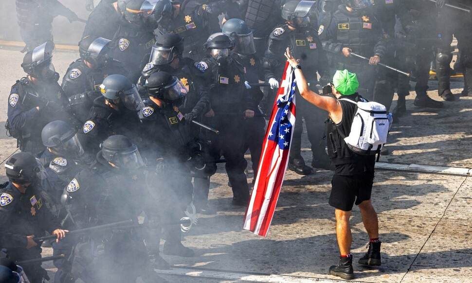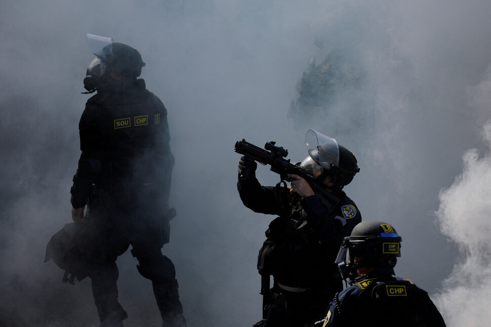 트럼프는 1기 집권 때인 2020년 조지 플로이드 시위 때 실제로 반란법 발동을 논의한 적도 있다. 하지만 당시 국방장관 마크 에스퍼와 합참의장 등 군 수뇌부는 물론 짐 매티스 같은 전직 국방장관까지도 “반란법 발동은 최후의 수단이며 지금은 그런 상황이 아니다”라고 공개적으로 반대했다. 이번엔 반대할 사람도 없다. 트럼프 충성파들이 군과 국토안보부, 연방수사국(FBI) 등 요직을 장악하고 있다.