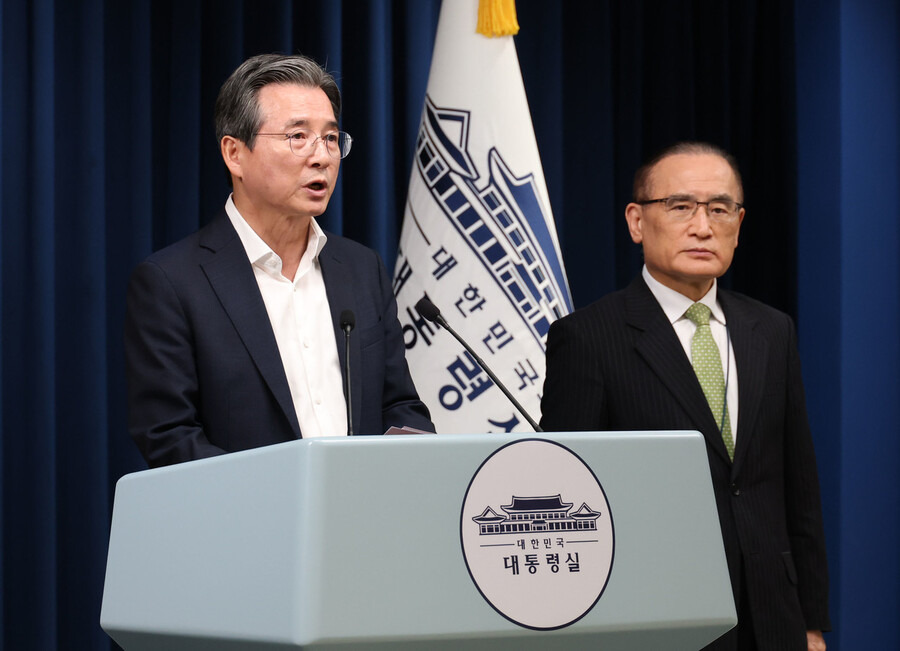 대통령실은 26일 “김용범 정책실장과 위성락 안보실장이 오늘 오후 통상현안 긴급회의를 개최해 대미 통상협상 현황을 점검하고 대응계획을 논의했다”며 이같이 밝혔다.