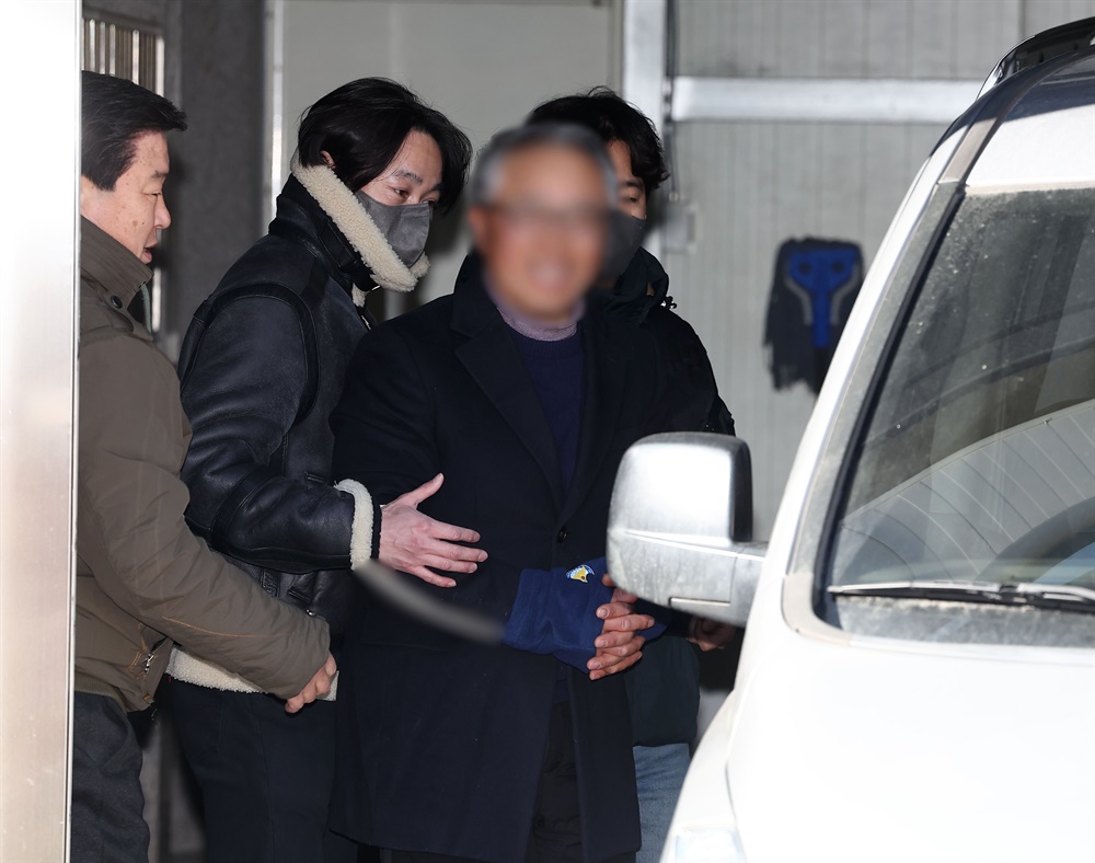 ▲영장실질심사 받는 사랑제일교회 '특임전도사' 윤모씨서울서부지법에서 벌어진 폭력 집단난동 사태에 가담한 사랑제일교회 특임전도사 윤모씨가 2월 5일 오후 서부지법에서 열리는 구속 전 피의자 심문(영장실질심사) 출석을 위해 서울 마포경찰서를 나서고 있다. ⓒ 연합뉴스
