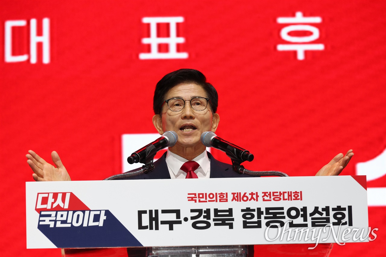 ▲8일 오후 대구 엑스코에서 열린 국민의힘 전당대회 합동연설회에서 김문수 후보가 발언하고 있다. ⓒ 조정훈