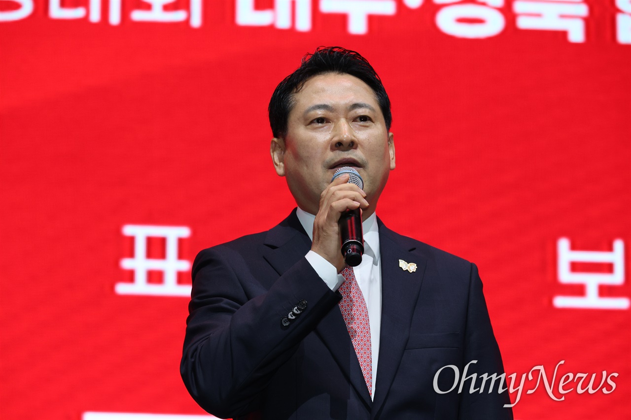 ▲8일 오후 대구 엑스코에서 열린 국민의힘 전당대회 합동연설회에서 장동혁 당대표 후보가 발언하고 있다. ⓒ 조정훈