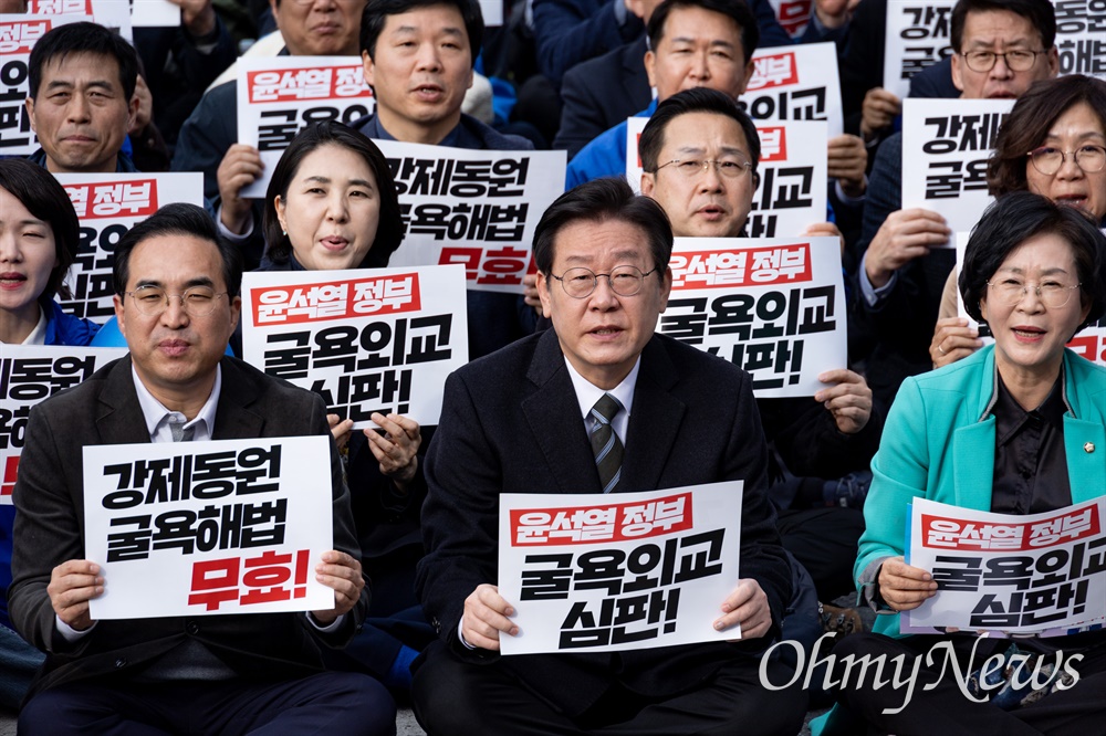 ▲2023년 3월 11일 서울광장에서 열린 '강제동원 굴욕해법 강행 규탄, 일본의 사죄배상 촉구' 2차 범국민대회에서 당시 이재명 더불어민주당 대표가 참석해 있다. ⓒ 이희훈