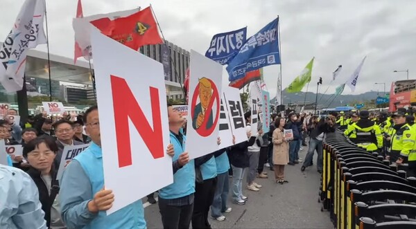 양경수 민주노총 위원장은 서십자각터 집회에서 "한미동맹은 미국 스스로, 트럼프가 이미 걷어찼다고 해도 과언이 아니다"라면서 "열흘 후 방문하는 트럼프에게 우리 민중들의 목소리를, 우리 국민이 민주주의를 지켜낸 그 힘을 다시 한번 보여줘야 할 때"라고 말했다. 그는 "지금 이 정부가 해야 할 일은 무엇인가. 우리 경제와 경제주권을 지키기 위해 단호하게 트럼프에게 NO라고 얘기하고 협상장을 걷어차고 우리의 자주권을 지켜야 한다"고 주장했다.