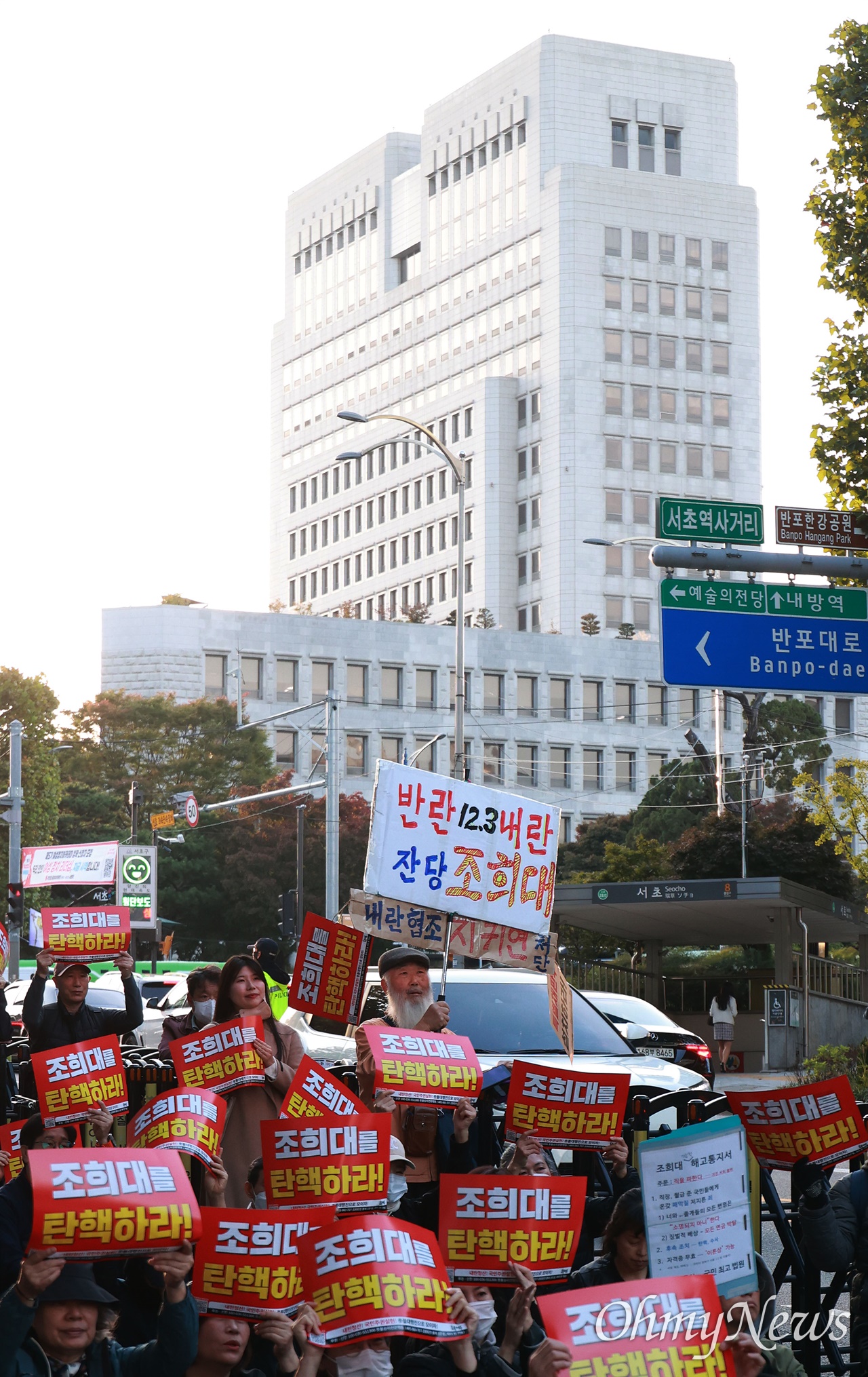 25일 오후 서울 서초구 대법원앞에서 촛불행동 주최로 열린 '내란청산 국민주권실현 162차 촛불대행진'에서 참석자들이 조희대 대법원장 탄핵 및 수사를 촉구하고 있다.