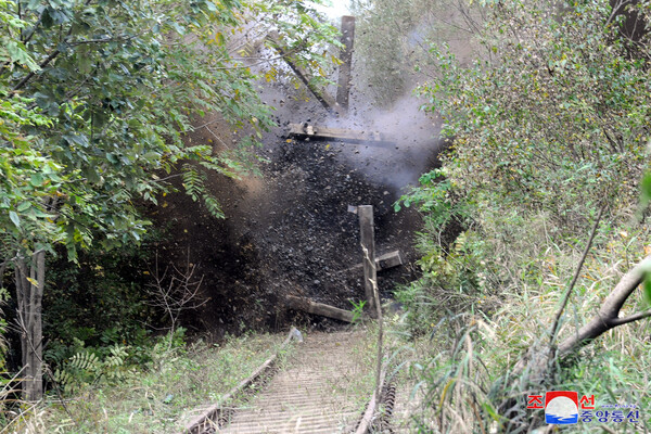 북한 조선중앙통신은 17일 이틀 전 있었던 경의선·동해선 남북연결 도로·철도 폭파 소식을 전했다. 통신은 "이는 대한민국을 철저한 적대국가로 규제한 공화국헌법의 요구와 적대세력들의 엄중한 정치군사적 도발책동으로 말미암아 예측불능의 전쟁접경에로 치닫고 있는 심각한 안보환경으로부터 출발한 필연적이며 합법적인 조치"라고 밝혔다.2024.10.17