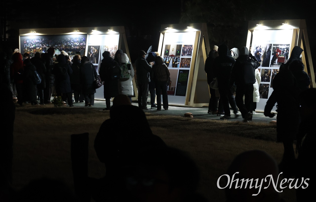 ▲3일 오후 서울 여의도 국회에서 열린 '비상계엄 해제 1주년 기억행사'에서 시민들이 12·3 비상계엄 해제요구 결의안 의결 당시 사진을 감상하고 있다. ⓒ 유성호관련사진보기