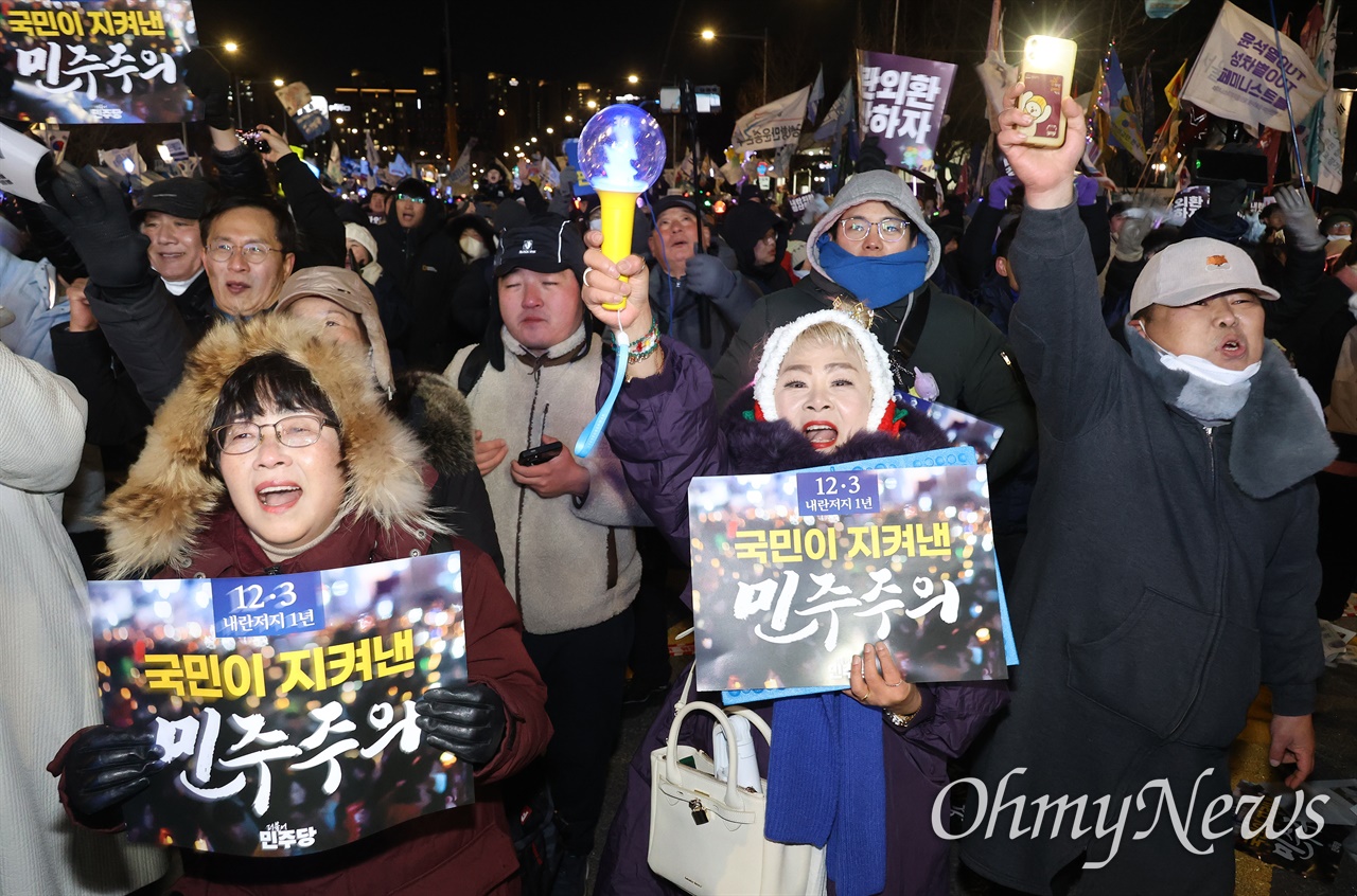 계엄 1년 다시 국회 밝힌 응원봉들 "국민의힘 나리들 잊지 않았다"