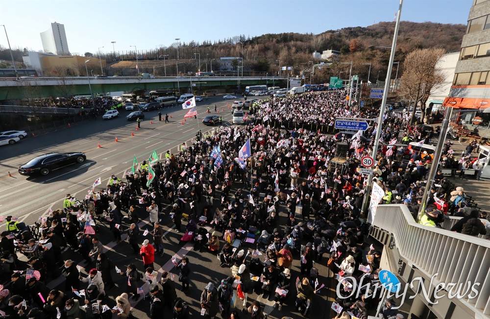 ▲내란 1년이 지난 지금, 여전히 야당과 정치세력화된 종교, 극우화된 세대들이 혐오와 증오를 쏟아내는 등 공론장이 분열되고 있다. 사진은 지난 1월 2일 서울 용산구 대통령관저 인근에서 보수단체의 윤석열 대통령 탄핵과 체포 반대 집회에 참석한 시민들이 태극기와 성조기 등을 흔들며 구호를 외치고 있는 모습.이정민