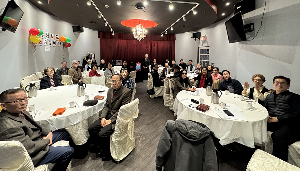 정관일 분교장이 마련한 축하 및 예배모임은 12월12일 오후 5시 리치몬드힐 낙원식당에서 선후배 동문과 교수진 등 30여명이 참석한 가운데 성황리 열렸다.
