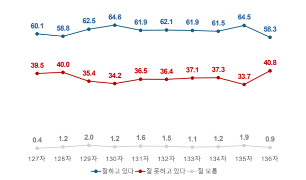대통령 국정운영 평가 ARS조사에서 '긍정' 크게 떨어져