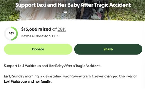 미국 조지아서 역주행 사고로 한인 신혼부부 사망 (애틀랜타=연합) 미국 조지아주에서 20대 운전자가 몰던 승용차가 역주행 4중 충돌사고를 일으켜 한인 남편과 임산부 아내 등 3명이 사망했다. 사망한 한인의 아내 렉시 월드럽 씨의 병원비를 모금하는 기부 사이트 '고펀드미'의 모습. [고펀드미 캡처]