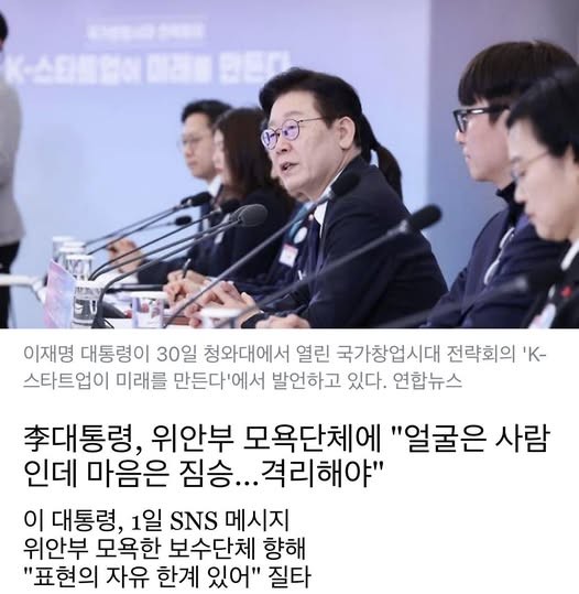 이 대통령은 이들을 향해 "얼굴은 사람인데 마음은 짐승"이라는 표현까지 사용하며 분노를 드러냈고, 나아가 "사람을 해치는 짐승은 사람으로 만들든지, 격리해야 한다"는 초강경 메시지를 던졌다. 이러한 발언은 위안부 피해자들을 향한 집요하고 잔인무도한 공격에 대한 자연스러운 반응으로 봐야 한다.