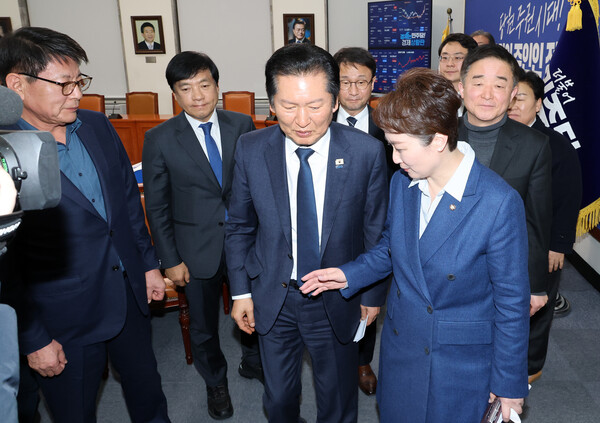 다행히 전날(9일)부터 오는 11일까지 진행되는 대정부 질문 이후, 민생법안 처리 등을 위한 국회 본회의가 12일에 예정돼 있어 민생·개혁 기조로 전환하기 위한 발판은 만들어졌다. 하지만 당내 상황은 녹록지 않다. 합당에 공개 반대해 온 이언주·강득구·황명선 최고위원 등을 포함해 70여 명이 의원 모임을 만들어 세력 결집에 나섰다는 분석이 나오면서 이들과 관계를 어떻게 끌어가느냐가 정 대표에게 또 하나의 숙제가 됐다.