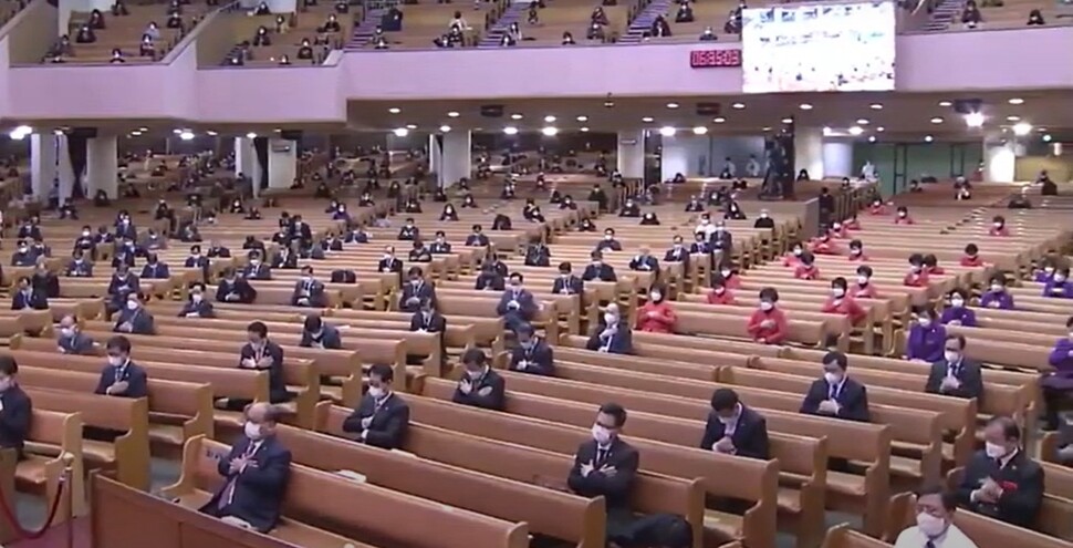 여의도순복음교회 예배 모습.