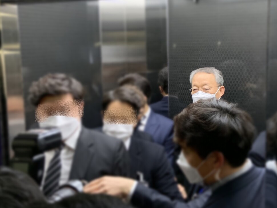 백운규 전 산업통상부 장관(오른쪽 첫 번째)이 8일 오후 대전지법에서 열린 영장실질심사에 출석하고 있다.