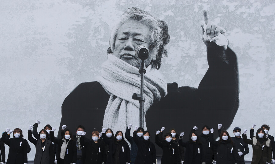 김은혜 국민의힘 대변인도 이날 구두논평에서 “고인은 모진 억압에도 굴하지 않고 한 평생 오로지 이 나라의 민주주의와 국민의 인권을 위해 헌신하셨다. 지금 우리가 누리고 있는 평등한 세상 또한 고인의 덕분이라 해도 과언이 아닐 것이다”며 “진정한 진보란 어떤 길을 가야 하는지 지금도 ‘어영차 지고 일어나는 대지의 싹’처럼 생명의 존엄, 정의와 공정의 가치를 일깨워주실 듯하다”며 고인의 명복을 기원했다. 송호진 기자