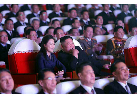 신문은 "총비서 동지께서 리설주 여사와 함께 극장 관람석에 나오셨다"고 전하고, 김 위원장과 리 여사가 공연을 보며 함께 웃는 사진도 여러장 실었다.