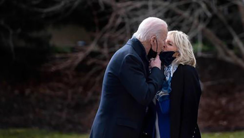 1월 29일 백악관에서 입맞춤하는 바이든 부부