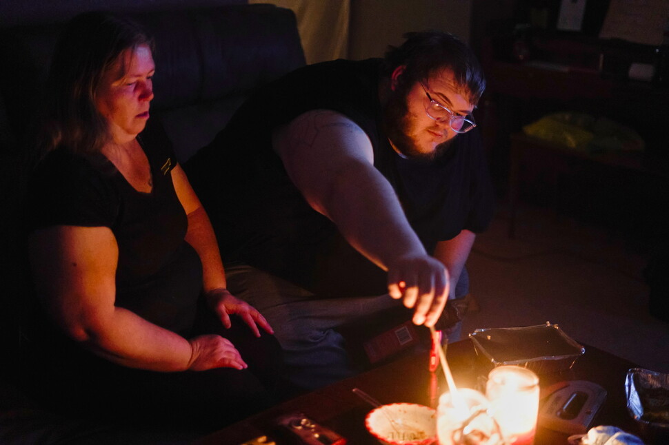 정전 사태에 촛불로 불을 밝히고 겨우 몸을 데우는 텍사스 주민