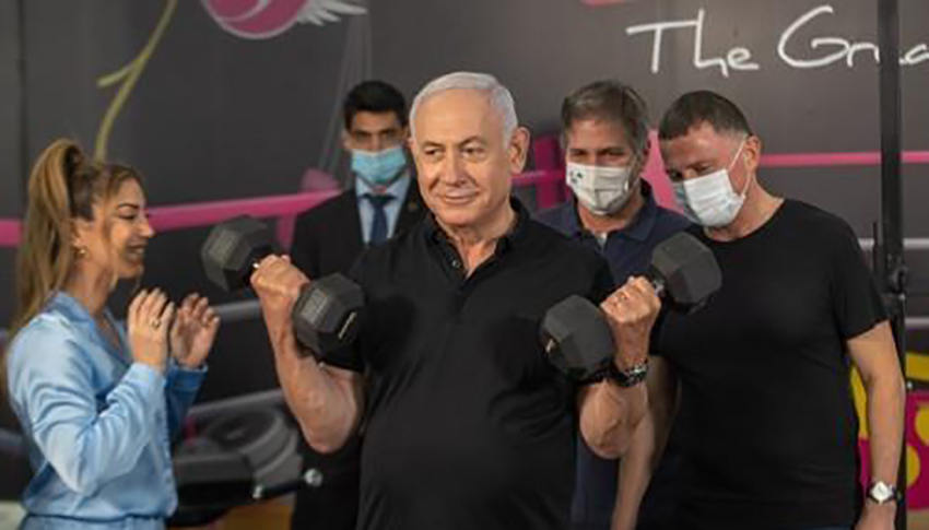 백신 접종자가 이용할 수 있는 헬스클럽을 방문한 베냐민 네타냐후 이스라엘 총리 [AP=연합뉴스]