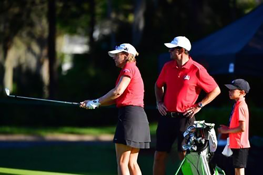 소렌스탐의 캐디를 맡은 남편 마이크 맥지와 아들 윌도 같은 패션이었다.