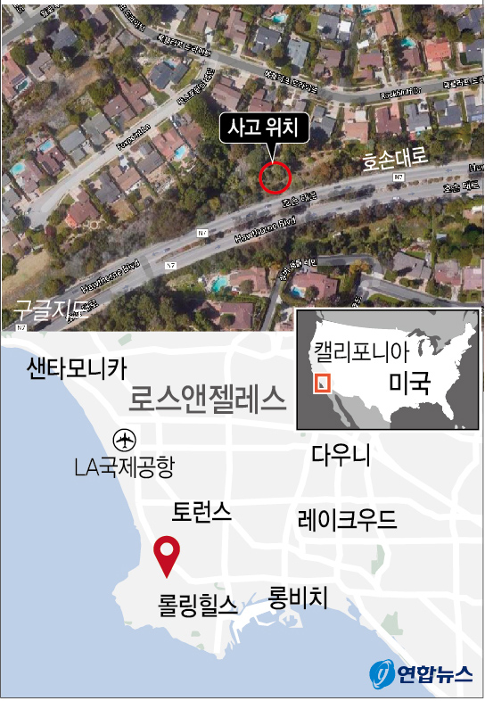 사고는 LA 시내에서 남쪽으로 32㎞ 떨어진 롤링힐스 에스테이트와 랜초 팔로스버디스 경계 도로에서 발생했다. 이 일대는 드라이브 코스로 유명한 곳이다.