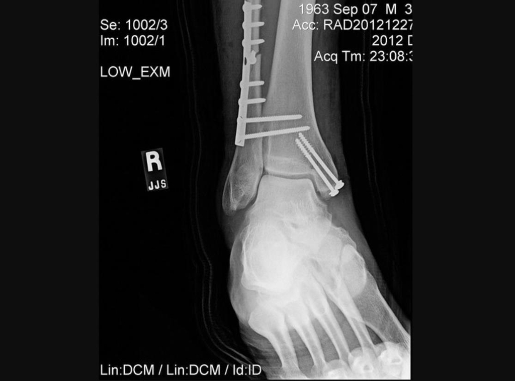 또 발과 발목뼈는 수술용 나사와 핀으로 안정시켰다.