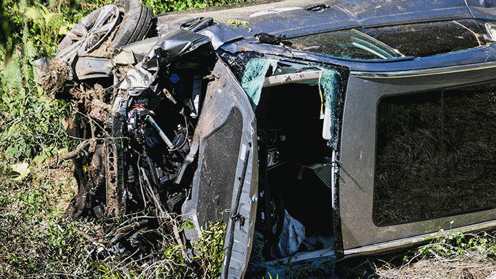 LA 카운티 보안관실은 차량이 크게 파손됐고, 차량 절단 장비를 동원해 우즈를 사고 차량에서 끄집어냈다고 발표했다.