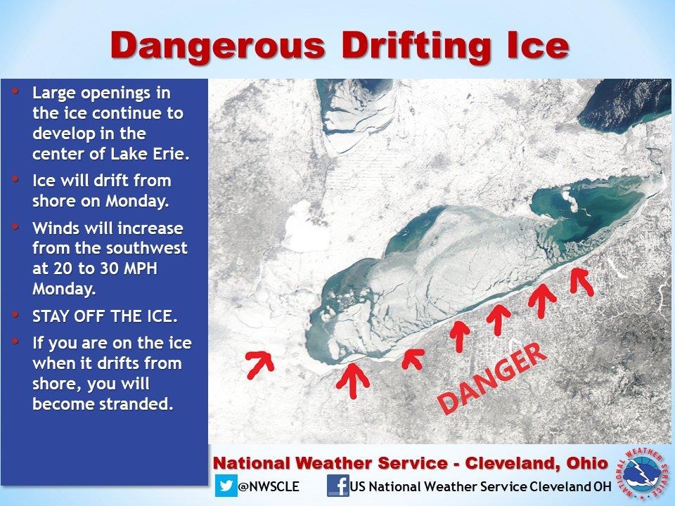 24일 CNN과 ABC 방송에 따르면 지난 주말 오대호 중 하나인 이리호의 클리블랜드 에지워터 공원 근처 호숫가에서 성인 7명과 어린이 3명이 갑자기 깨진 얼음 조각에 실려 호수 중심부로 1.6㎞나 떠내려갔다.