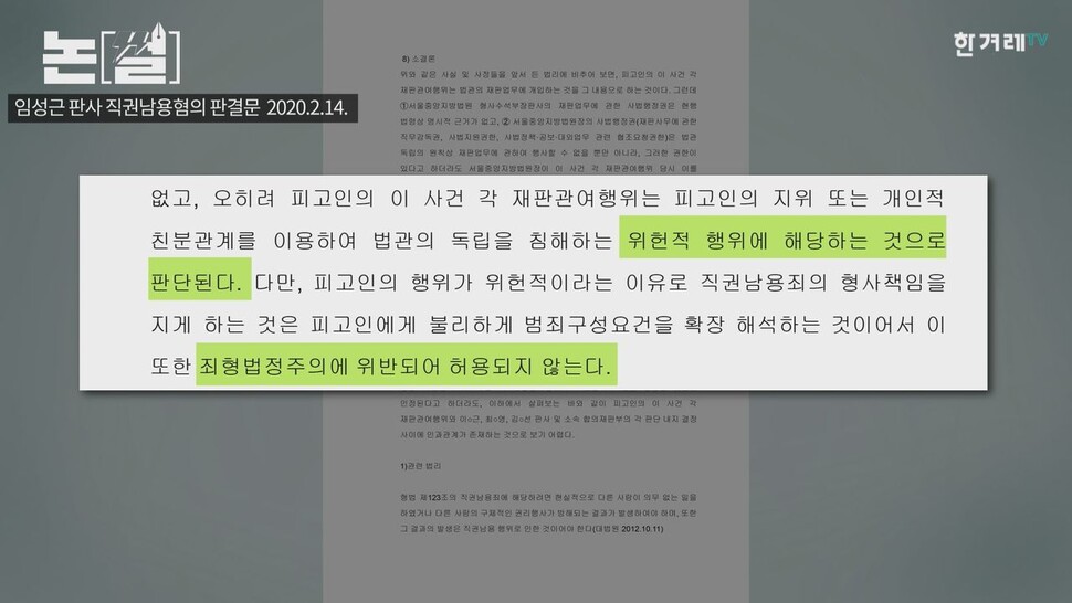 임성근 판사 직권남용혐의 판결문.