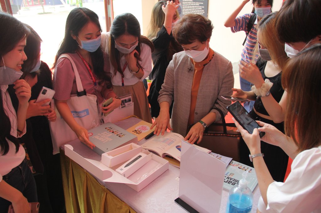 BTS 한국어 교재 살펴보는 베트남 탕롱대 학생들