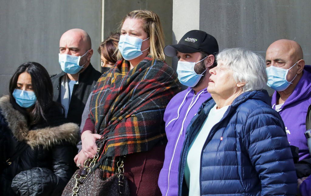 온타리오 고등법원 앞에서 3일 미나시안의 트럭 돌진 사건 피해자와 유족들이 판결을 듣기 위해 서 있다.[로이터=연합뉴스]