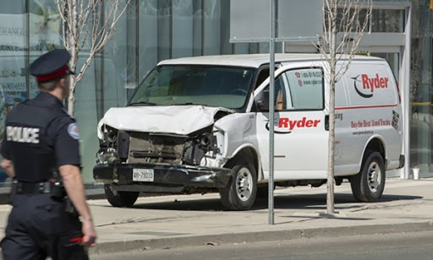 2018년 4월 24일 알렉 미나시안이 트럭으로 돌진해 시민들을 살상한 노스욕 현장과 범행차량.