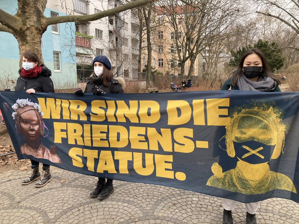 독일의 수도 베를린에 설치된 평화의 소녀상 앞에서 6일(현지시간) 113주년 3·8 세계 여성의 날을 앞두고 시위가 열렸다.