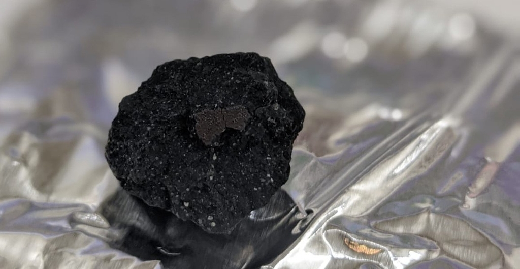 영국 작은 마을에 떨어진 운석 조각: 태양계 생성기인 약 46억년 전 화학성질을 그대로 유지한 '탄소질 콘드라이트'로 이뤄져 있다고 한다. [영국 자연사박물관 제공]